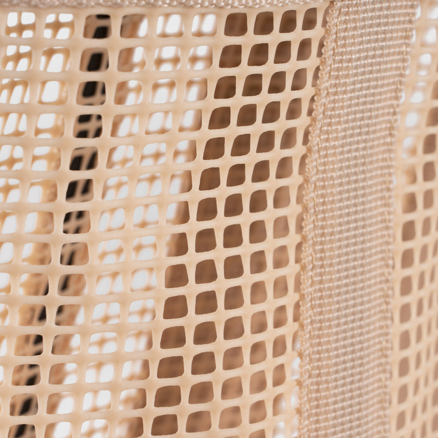 A timeless essential redefined for durability. Woven from marine-grade mesh and waterproof vinyl-coated nylon, this tote thrives in the face of spills, stains, and life. It's not just easy to clean; it's a breeze, always retaining that flawless look. With a generous 33 liters of space, it strikes the perfect balance – roomy enough without being overly large. Inside, you'll find convenient pockets for your phone and essentials, along with a dedicated spot to hold your Stanley or water bottle upright. This tote is built tough, far from your average beach companion.