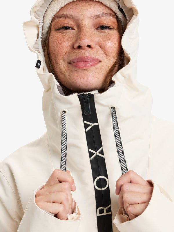 The ROXY Shelter Anorak Snow Jacket is your winter wingwoman. Crafted with waterproof, breathable DryFlight tech and cozy Warmflight insulation, it's built to keep you toasty and dry on the slopes. Adjustable features like the 3-way hood and snap-away powder skirt let you customize the fit, while thoughtful pockets stash your essentials. Shred in style with this tailored, high-performance pullover. Featured here in the Wild Wind colorway.