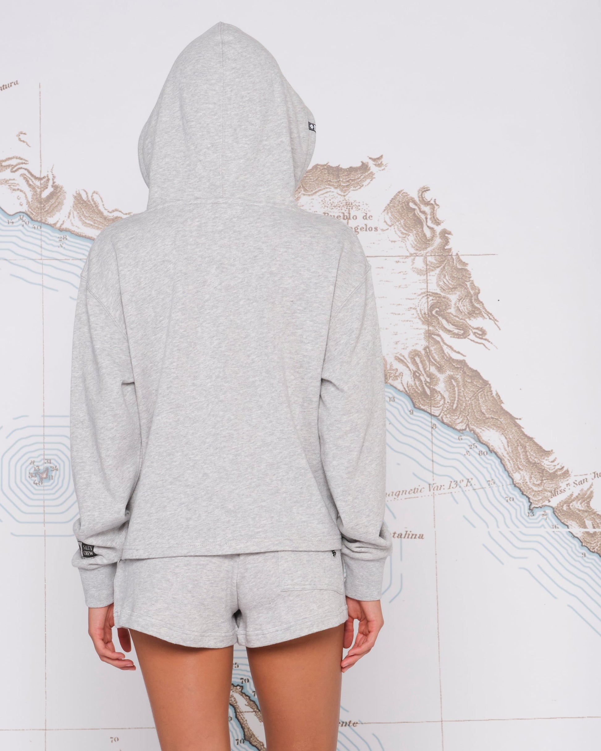 Salty Crew clamp label at hood